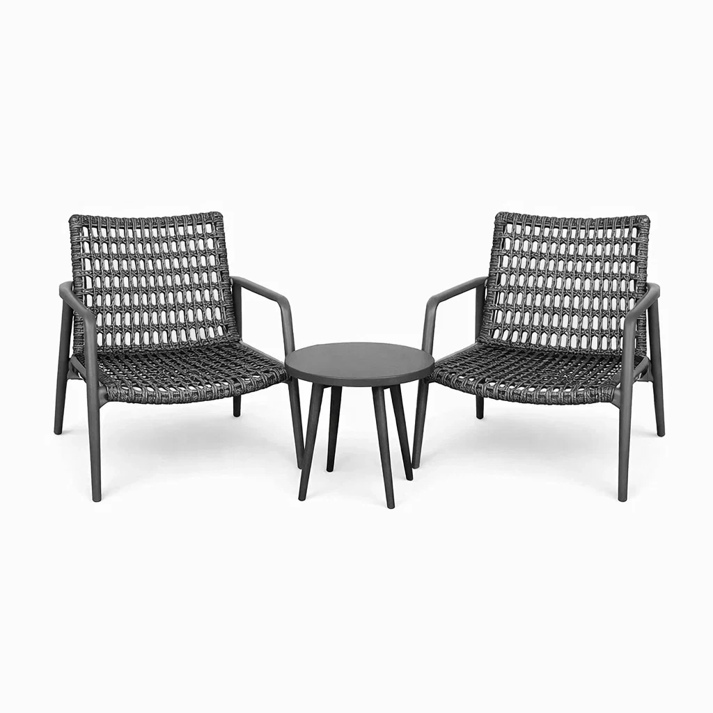 Détails du design : Ensemble de deux fauteuils avec accoudoirs et une table basse ronde
